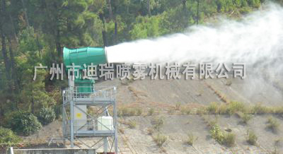 高塔式噴霧風炮一般安裝在混凝土澆筑、鋼架結構搭建的平臺上,依靠噴霧風炮射程遠,水平旋轉角度大進行大面積噴霧除塵。